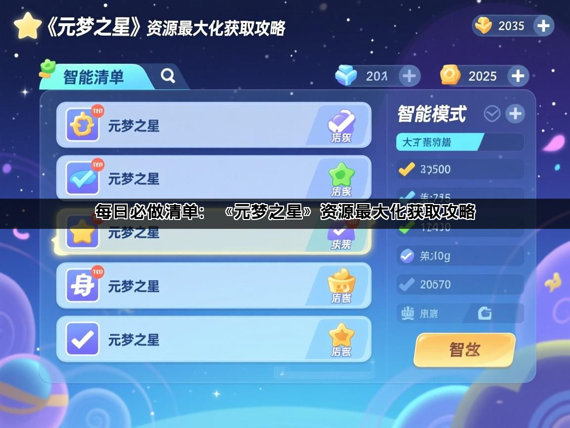 资深玩家分享元梦之星资源最大化获取攻略,包含每日必做清单、星梦币高效收集、活动参与技巧等完整指南,助...